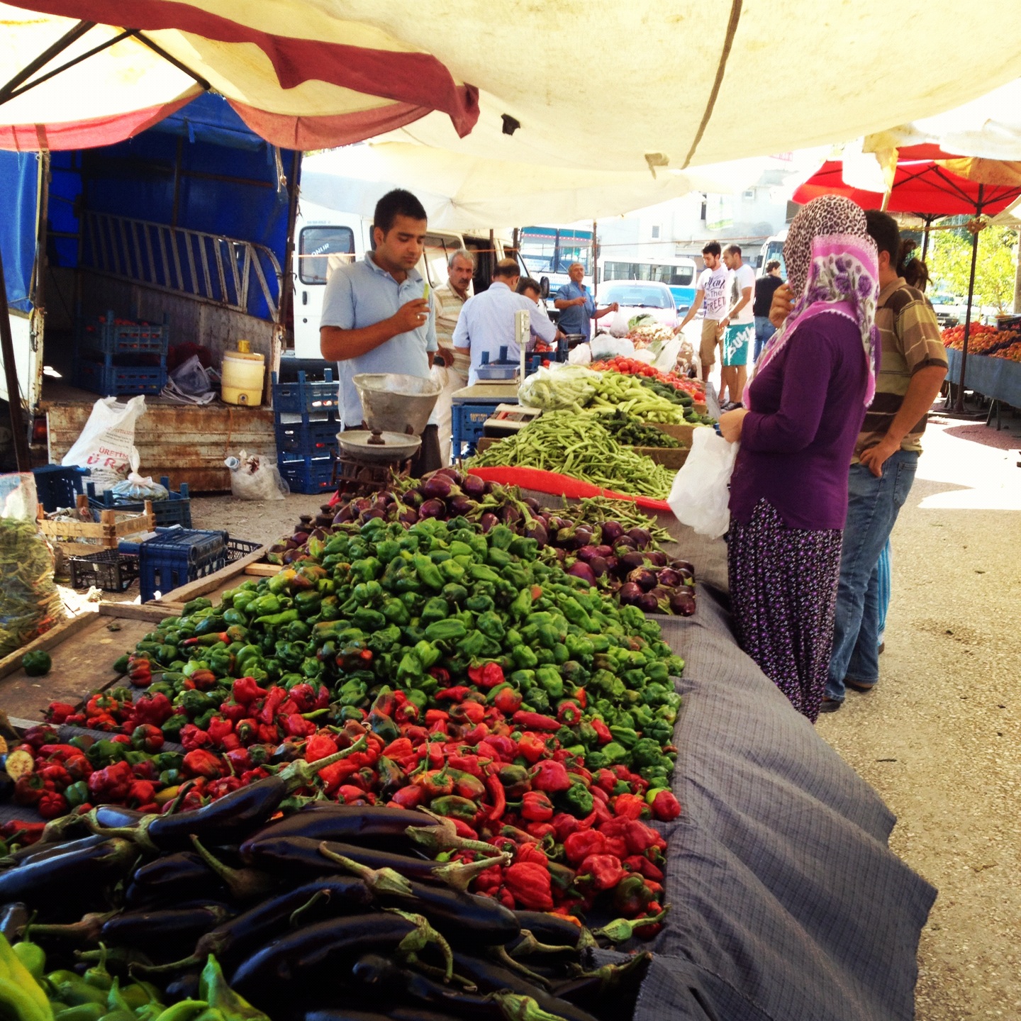 I live in a rich agricultural region, and am so very grateful. The neighborhood farmer’s market, or pazar, occurs every Thursday, but these also happen throughout town on other days of the week. When the actual pazar is not occurring, the mom and pop markets carry fresh fruit and vegetables, or you can often purchase them from a cart or vehicle on the side of the road. Basically, we have fresh produce straight from the ground at rock bottom prices at any and all times. Heaven!