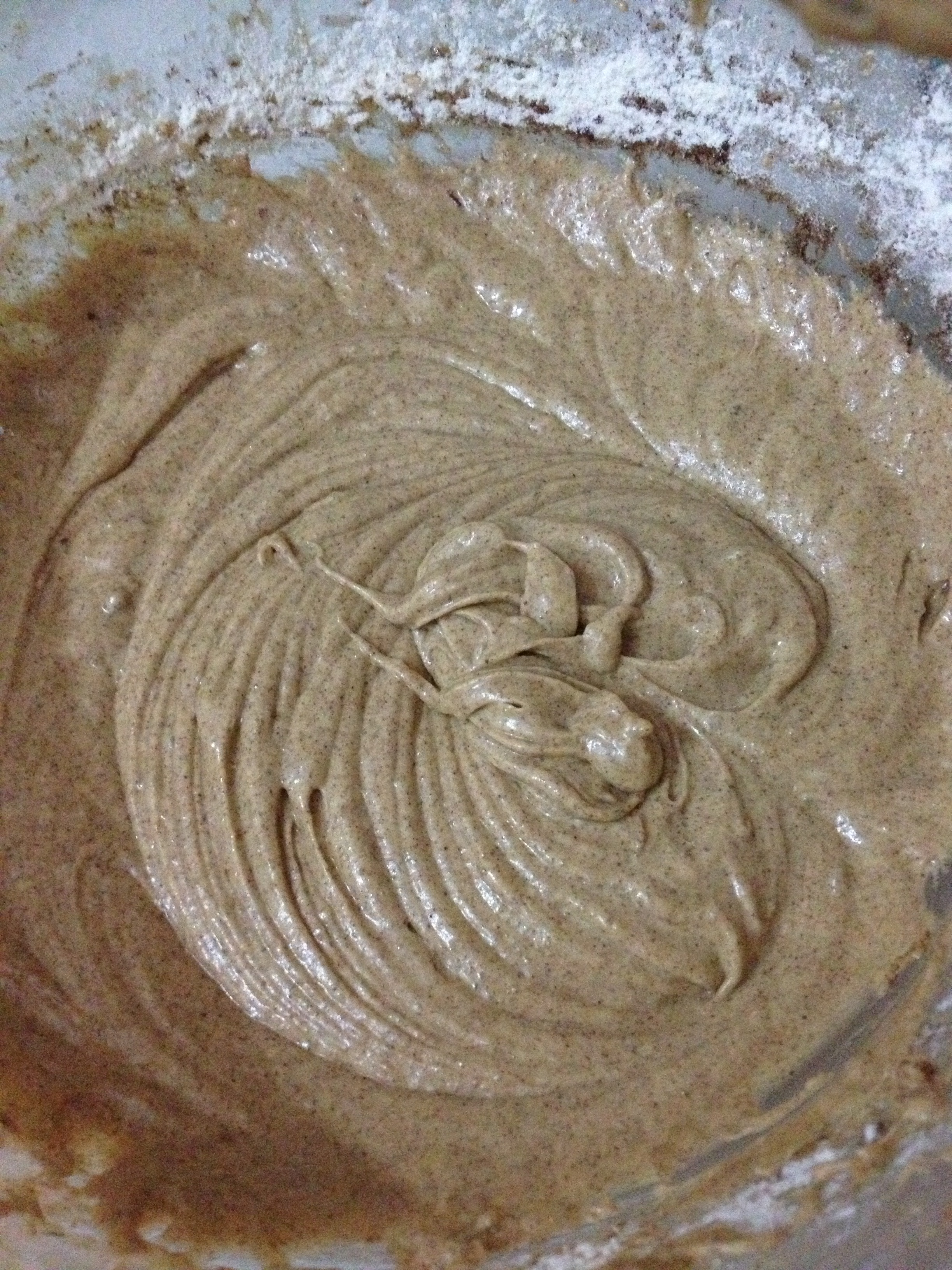 Mixing up all the goodness: batter, chocolate, nuts…