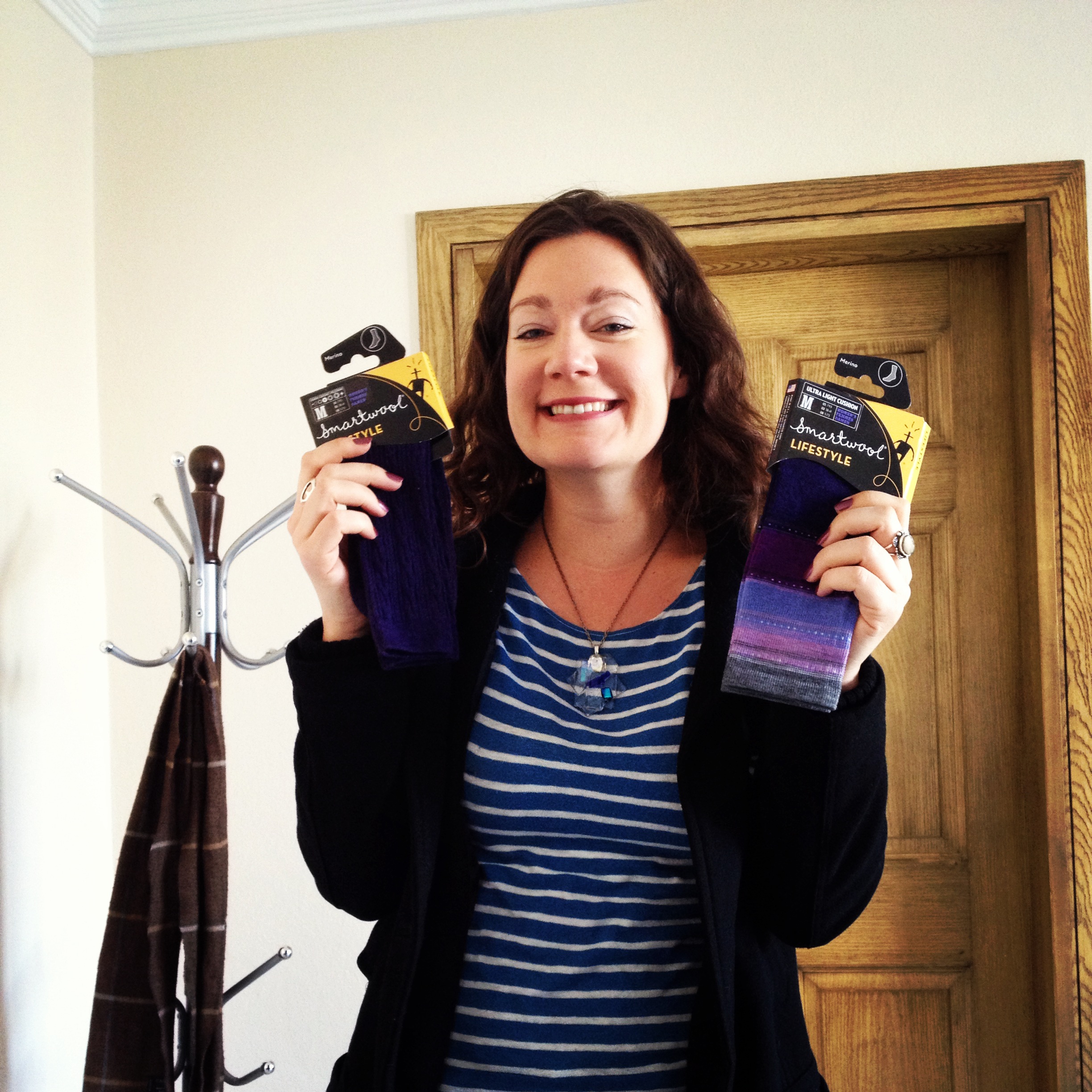 Warm socks that my dear mother sent me in the mail keep my feet warm