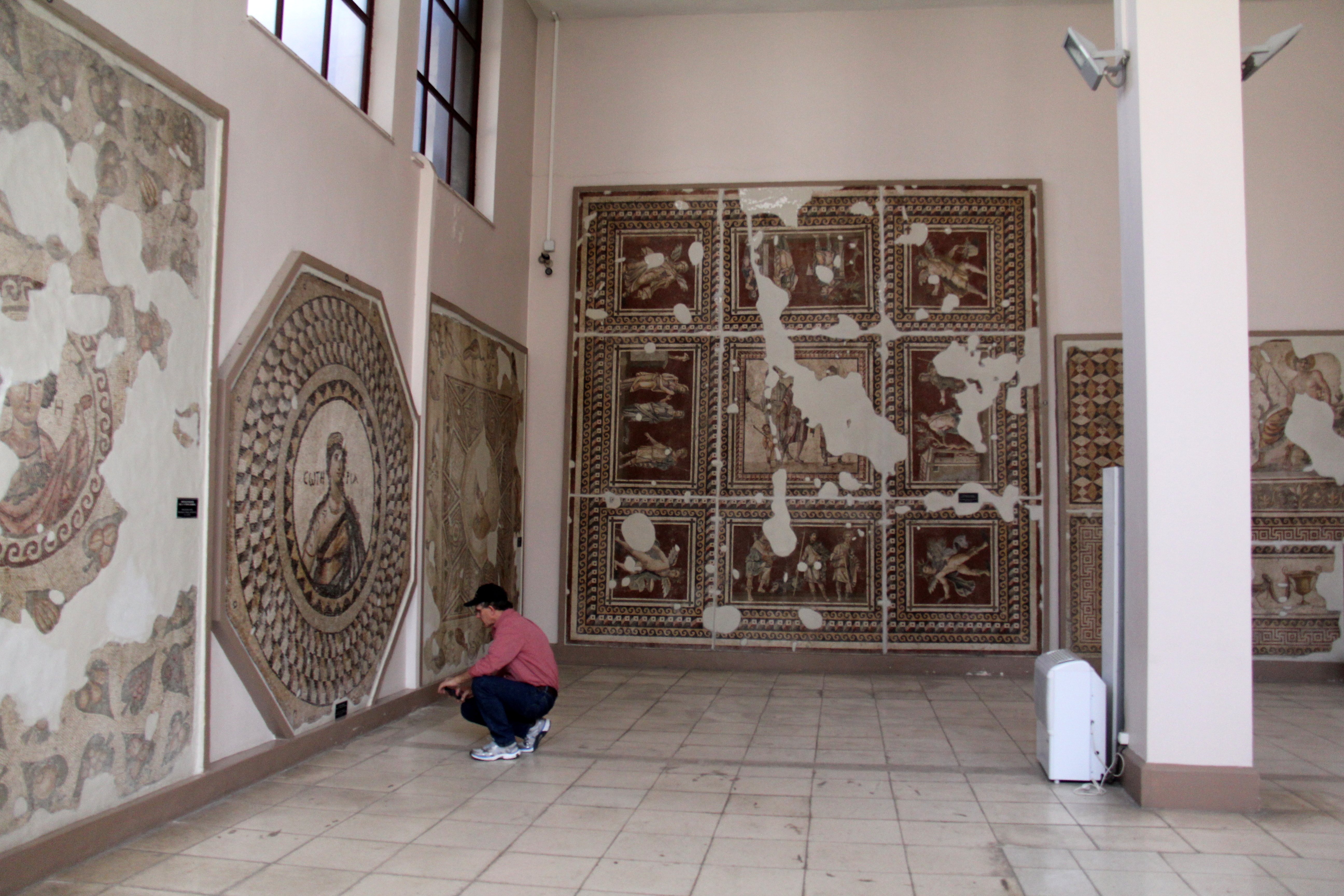 observing ancient mosaics found in the region,