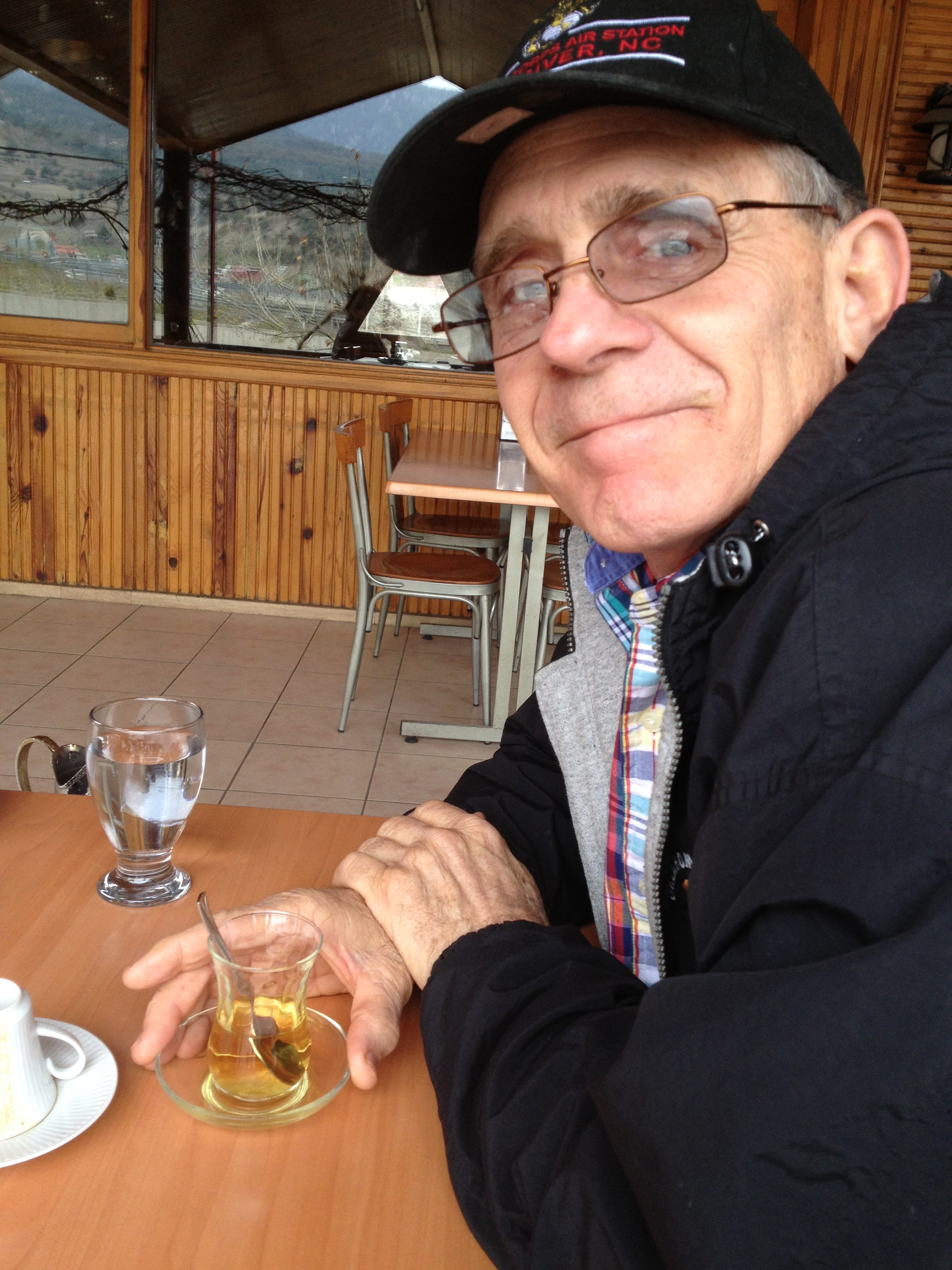 sipping a cup of kaynar, a piping hot cinnamon-walnut beverage, in the old caravansari in Tarsus,