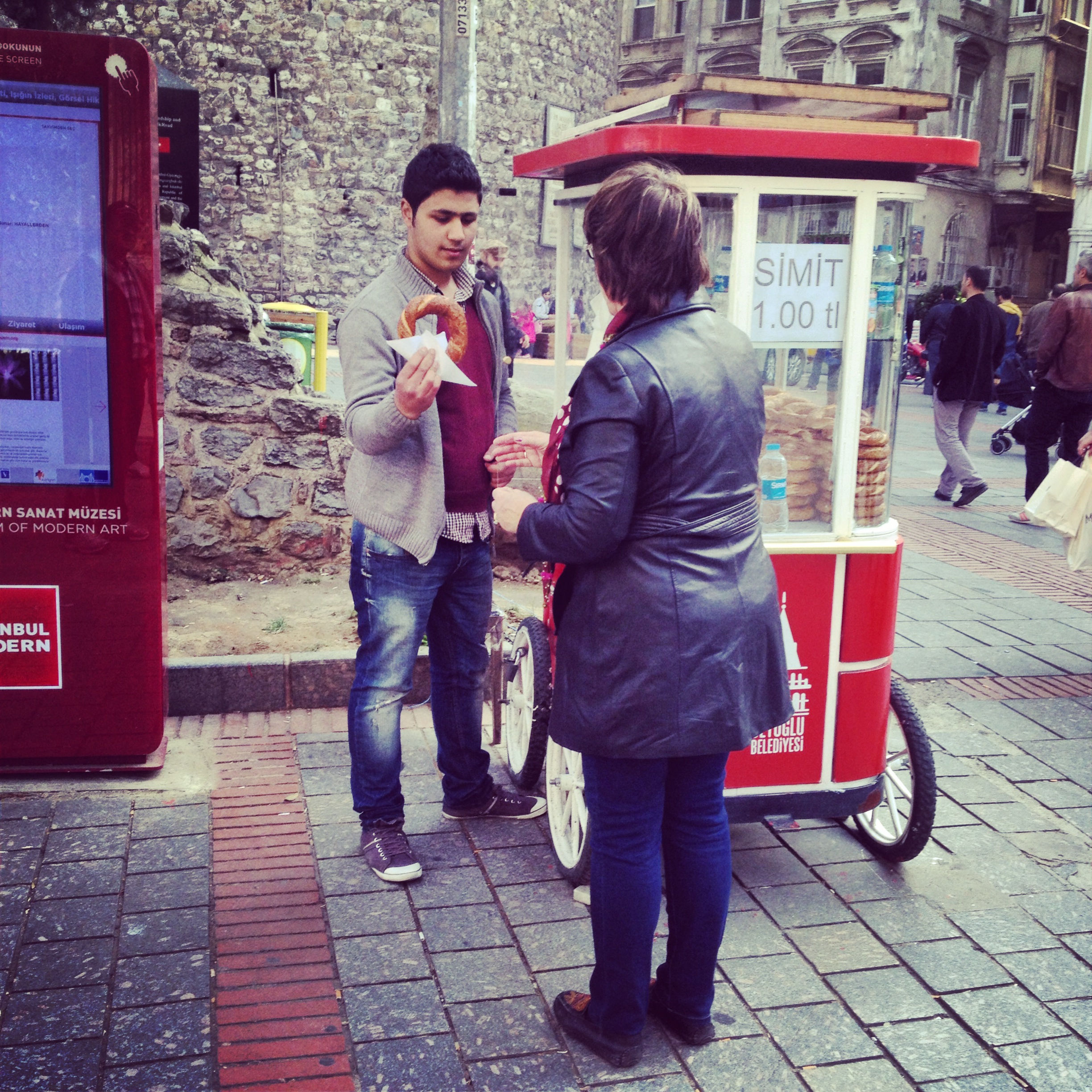 Mom purchasing simit on the street
