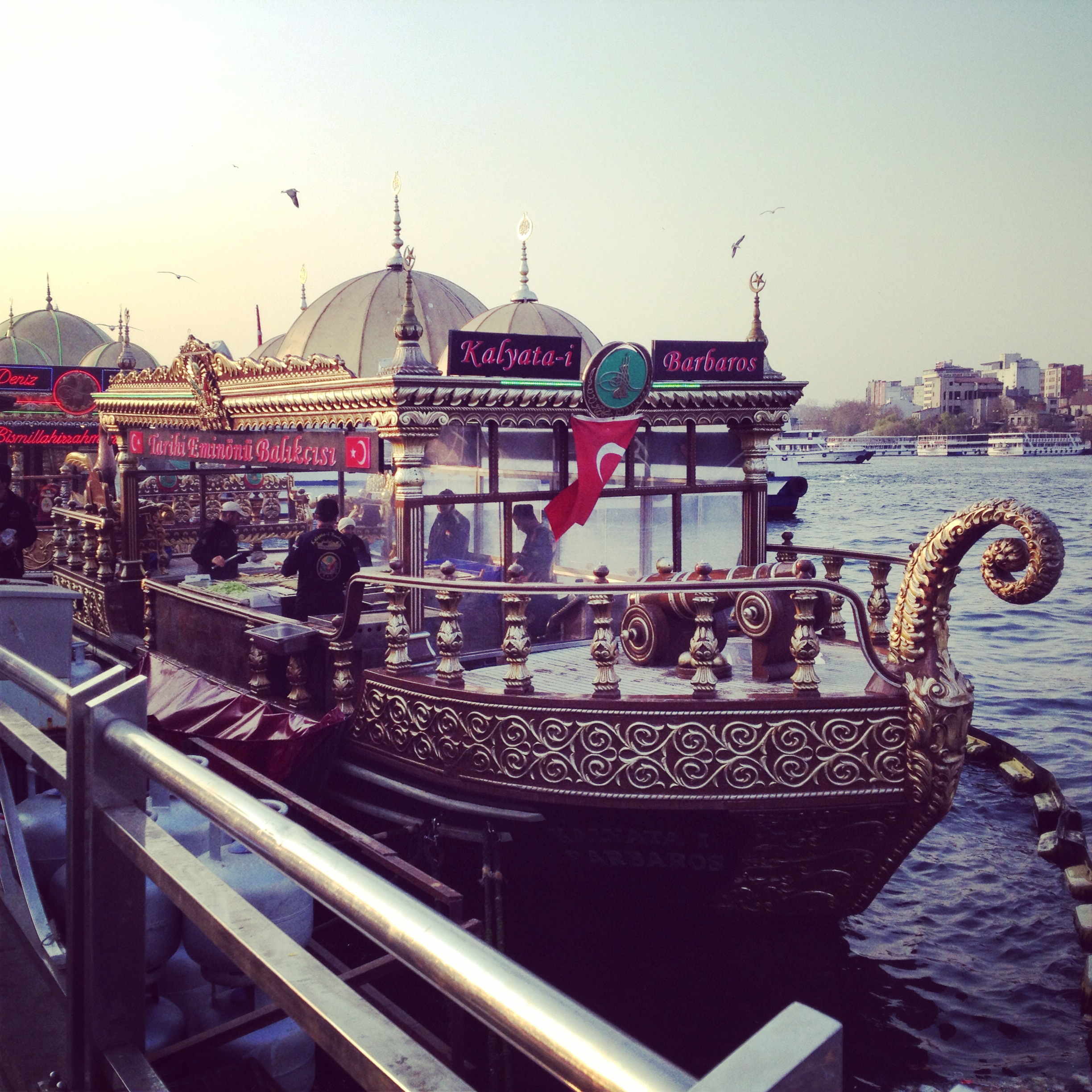 One must purchase a fish sandwich off a boat in Karakoy or Eminonu